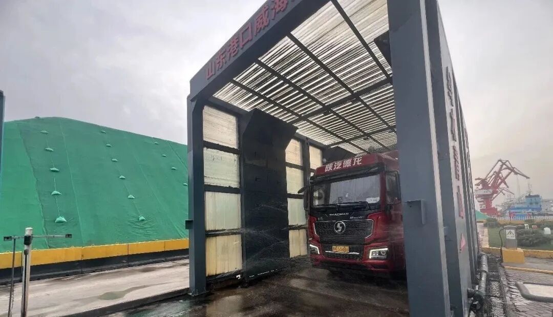 把進(jìn)出港的卡車(chē)沖刷得锃亮