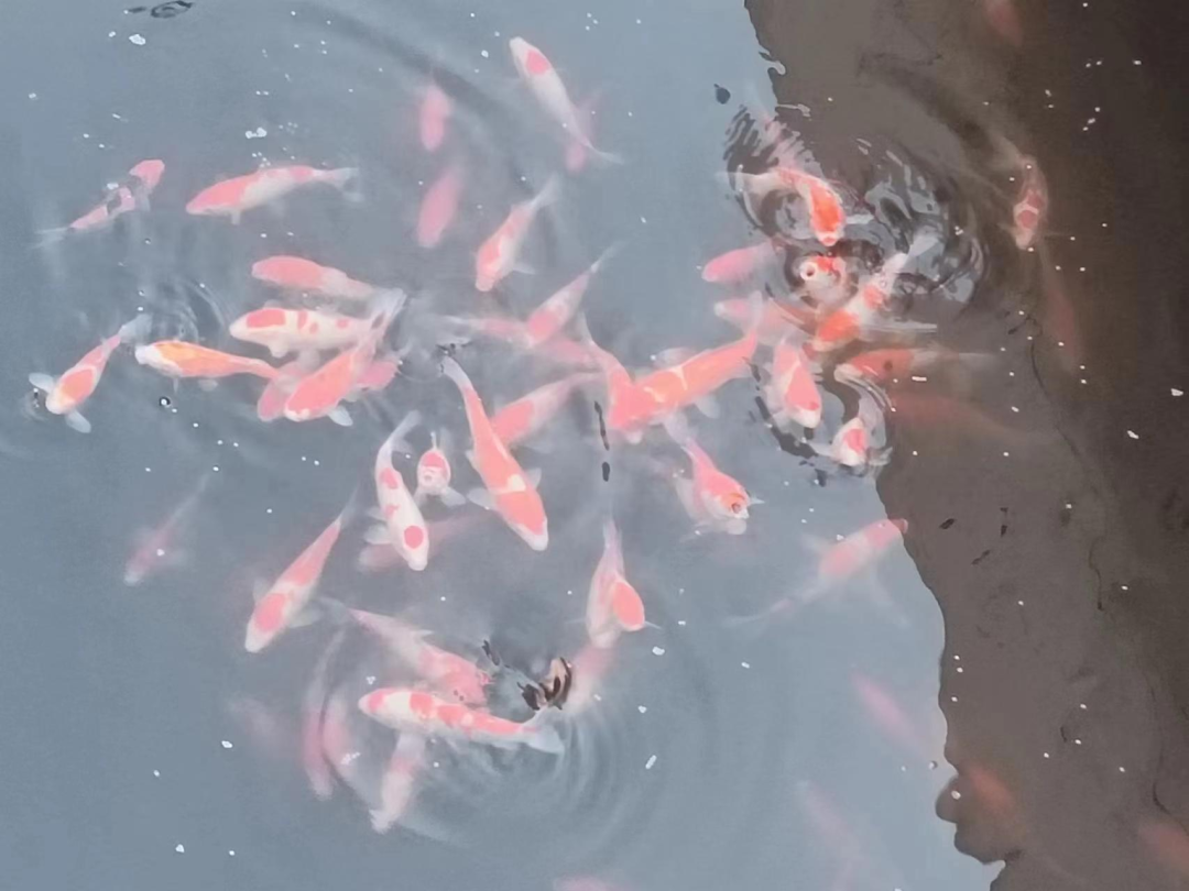 “快來(lái)看!這池子里的金魚(yú)游得也太歡了吧!”