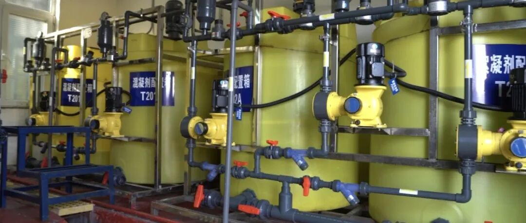再進(jìn)絮凝沉淀池,加藥后小分子污染物就像被磁鐵吸住似的聚成塊。