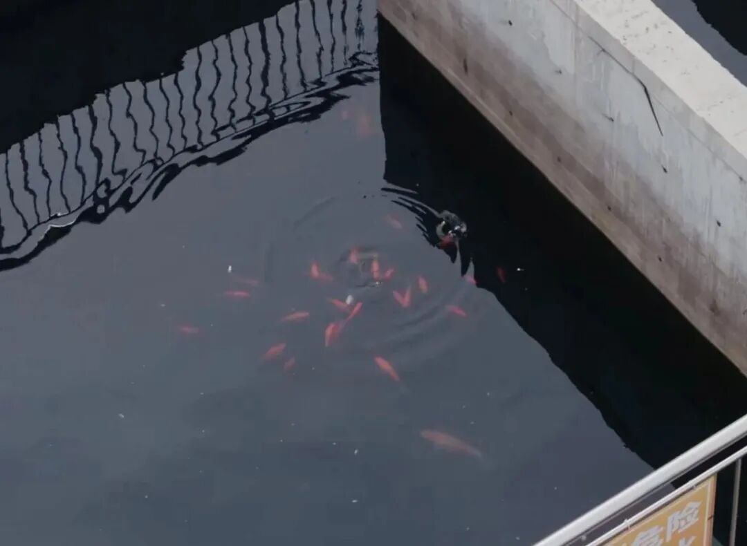 工作人員干脆在蓄水池里放了幾尾金魚(yú)