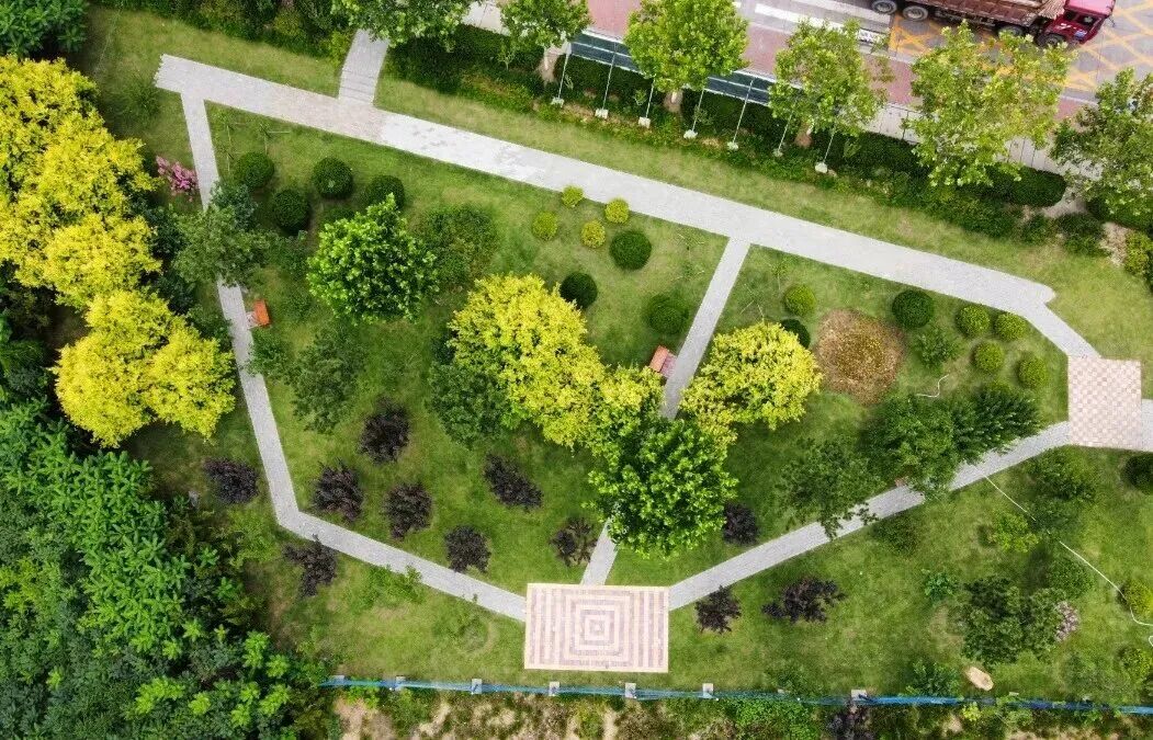 →連新建的兩個(gè)口袋公園